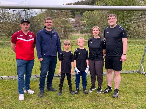 Was für eine Freude war im letzten Hallentraining der F-Jugend der SG TSV Stallwang-Rattiszell / SV Haibach, als es hieß: „So, und nun bekommt jeder von euch ein schwarzes JAKO-Shirt GESCHENKT!“ Organisator Simon Stahl überbrachte die von der Kfz-Prüfstelle Steinach – FSP Partner des TÜV Rheinland gesponserten Shirts an die überraschten Kinder. „Eiz schaut’s es aa aus wie de Spieler der G-, E- und D-Jugend. Dann kemma als Einheit daher.“ All‘ diese Jugendspieler besitzen ebenfalls gesponserte schwarze Trainingsshirts bzw. Hoodies mit dem Aufdruck „SG Stallwang/Haibach“ bzw. „SG Stallwang/Haibach/Elisabethszell“. Die C-Jugend erhält ihre Shirts demnächst. Beim Training in den Osterferien begrüßten die Kinder der F-Jugend den Vertreter von der Kfz-Prüfstelle Steinach, Clemens Bielmeier, mit einem lautstarken „DANKE!“ und zeigten ihm dann ihr Können in einem Trainingsspiel.